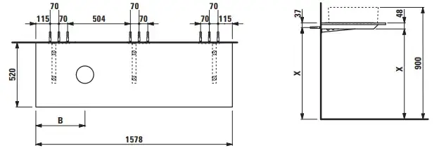Топ под раковину SX 158*52*1.3h белый матовый-100