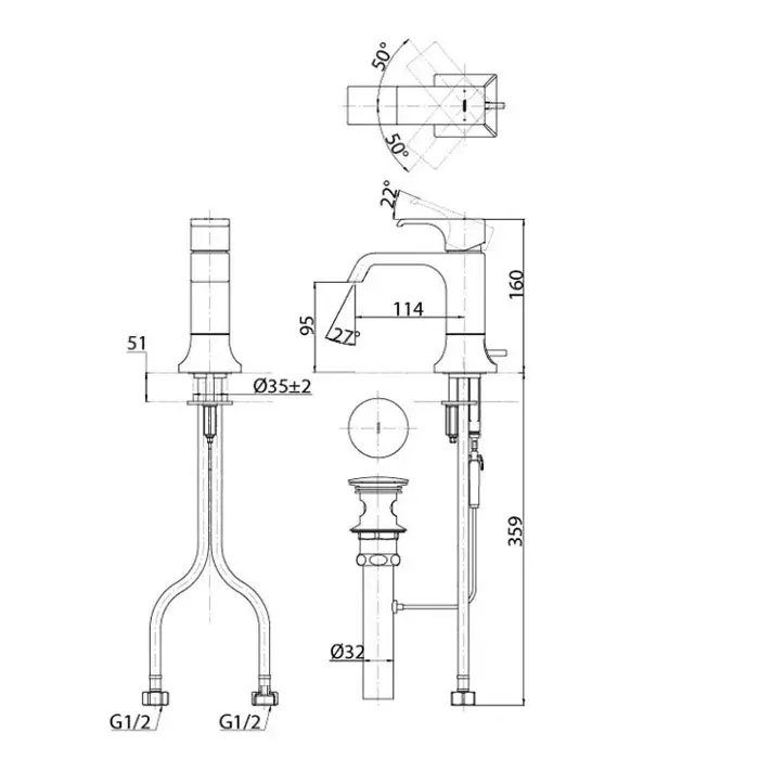 TOTO GC Смеситель для раковины высокий на 1 отв,со сливным клапаном, цвет: хром
