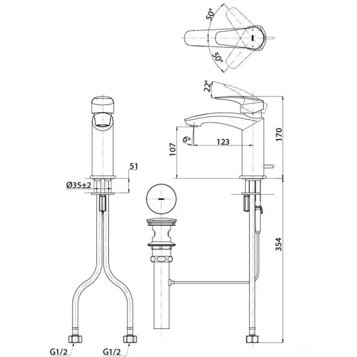 Toto GM Смеситель для раковины на 1 отв., со сливным клапаном, цвет: хром TLG09303R