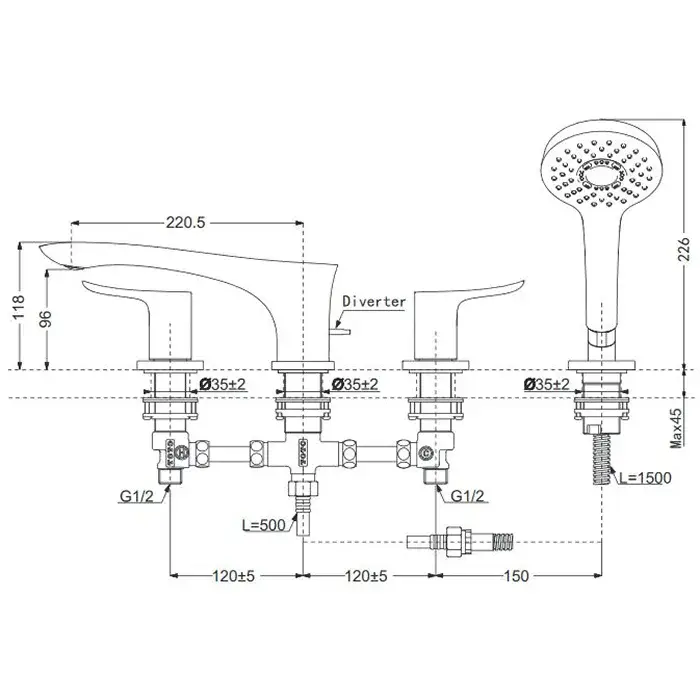 TOTO NEOREST Смеситель для ванны отдельност., с ручным душем, латунь, цвет: хром (нужно основание TBN01105R)