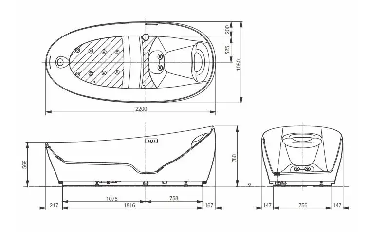 TOTO NEOREST Ванна 220x105x78см, отдельностоящая, с гидро и аэро-массаж, эффект невесомости, цвет: белый