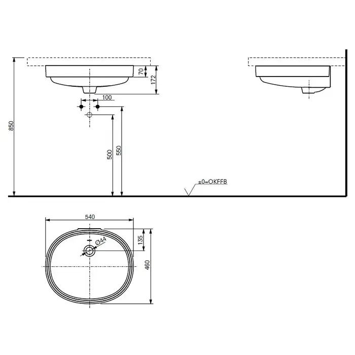 Toto Public Раковина 54x46xh17,2 см, встраиваемая снизу, с переливом, цвет белый LW764Y#XW