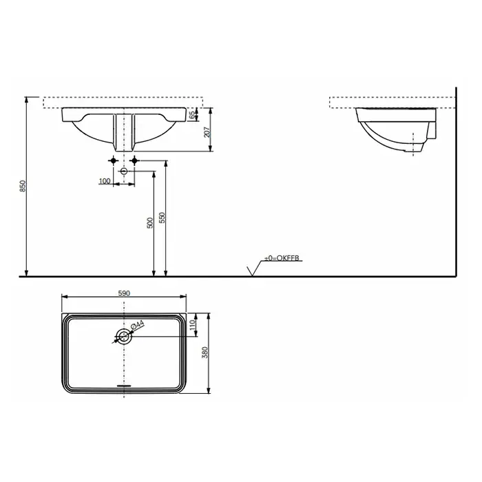 Toto WU Раковина встраиваемая снизу 59x38 см, с переливом, цвет: белый LW1536Y