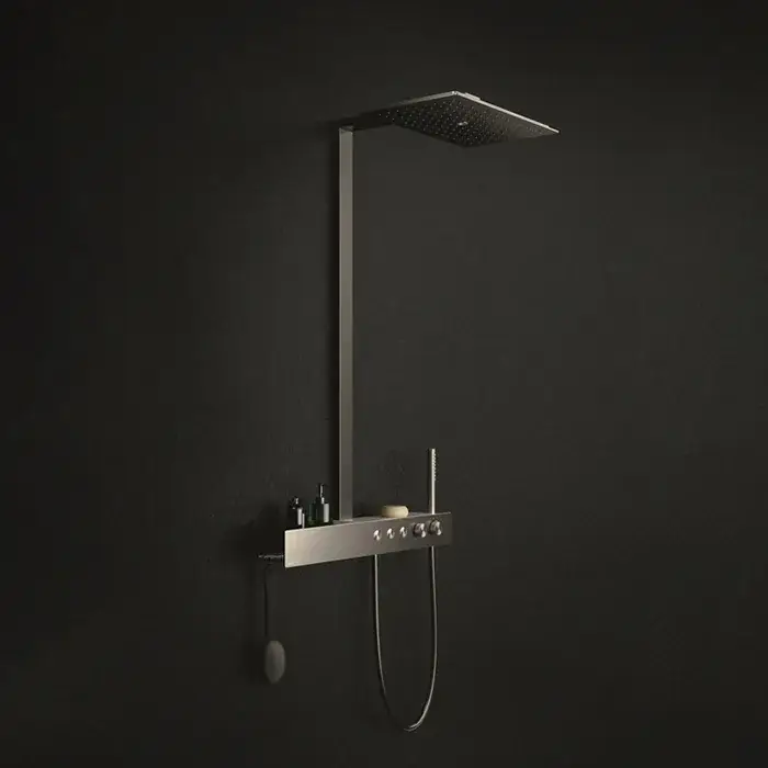 TOTO Z Душевая стойка с термостатическим смесителем, верхним и ручным душем 112x545x1113мм с белой полочкой, цвет: хром
