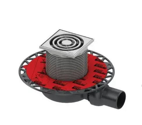 Трап низкий горизонтальный с фланцем, 0.61-1.12 л/с,в комплекте - сифон,гидрозатвор,решетка 10*10см,заглушка d.25.2*L.28*h.0.8-9.2, полир. нерж.сталь