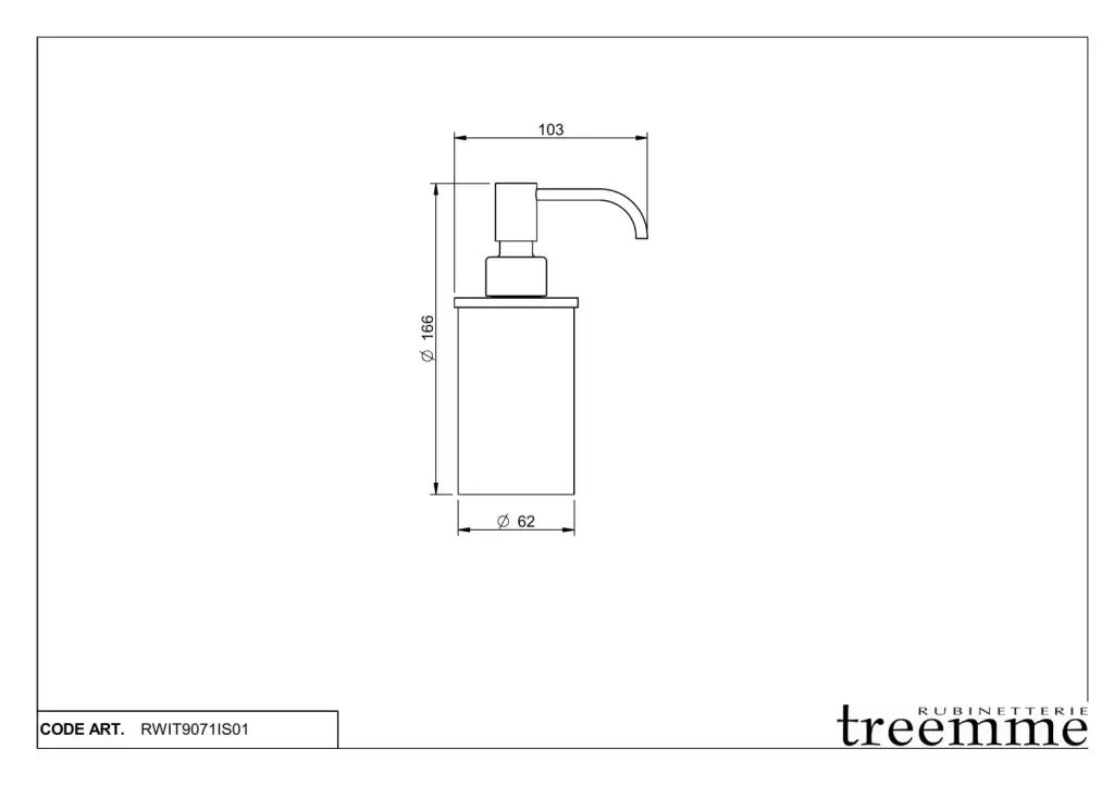 Treemme 22mm Дозатор для жидкого мыла, настольный, цвет: нержавеющая сталь RWIT9071IS01