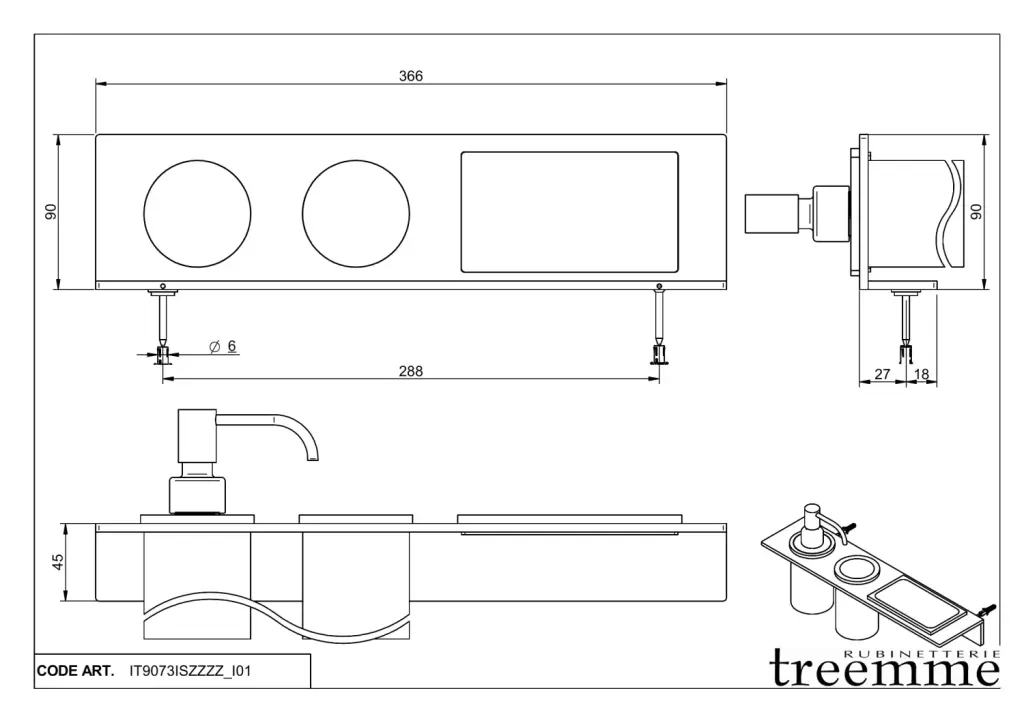 Treemme 22mm Дозатор для жидкого мыла с держ., стакан, полкой, керам. колба, цвет: нержавеющая сталь IT9073ISZZZZ