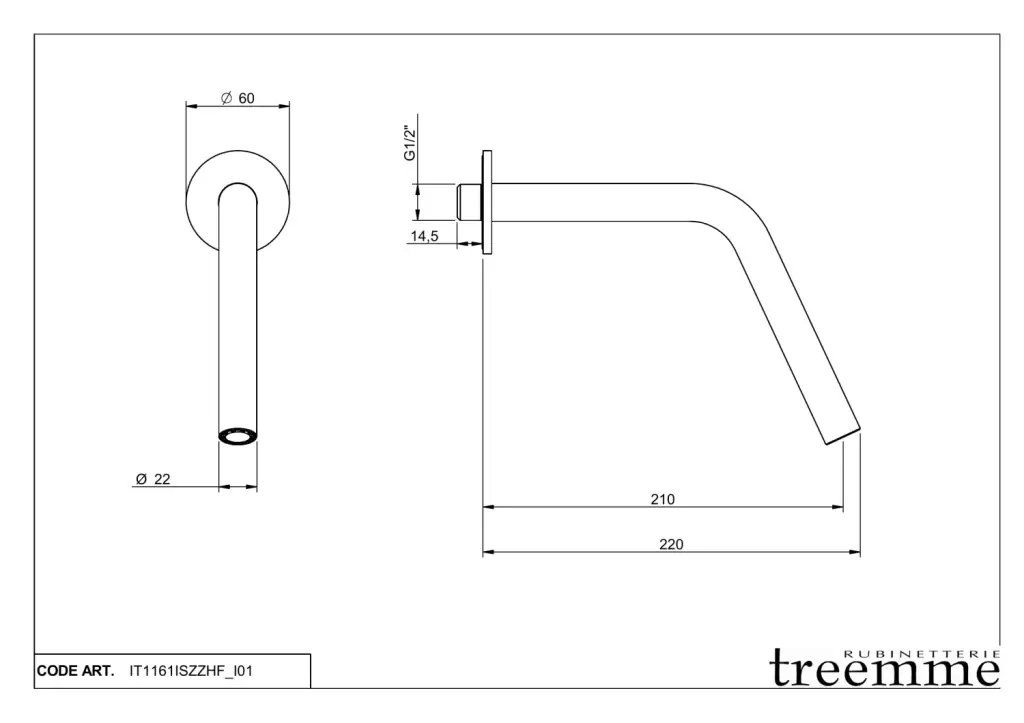 Treemme 22mm Излив настенный для ванны 22 см, цвет: нержавеющая сталь IT1161ISZZHF