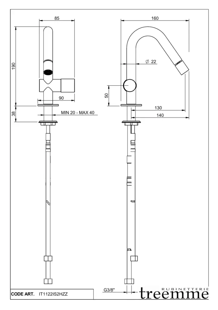 Treemme 22mm Смеситель для биде, без донного клапана, цвет: нержавеющая сталь IT1122IS2HZZ