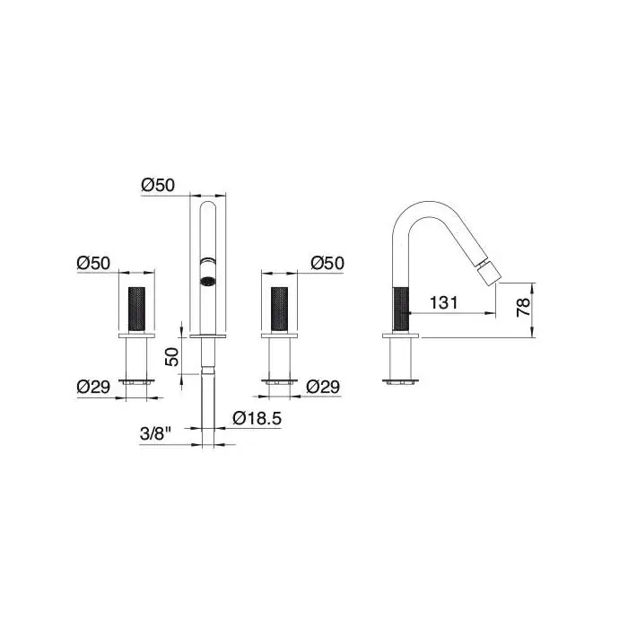 Treemme 22MM Смеситель для биде на 3 отверстия, цвет: нержавеющая сталь 6020IS