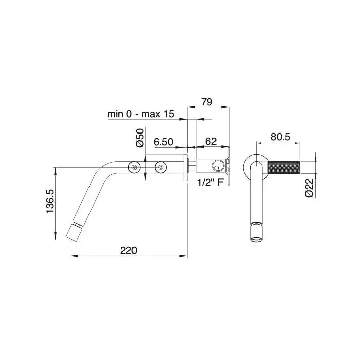Treemme 22MM Смеситель для биде настенный встраиваемый, цвет: нержавеющая сталь 3028IS