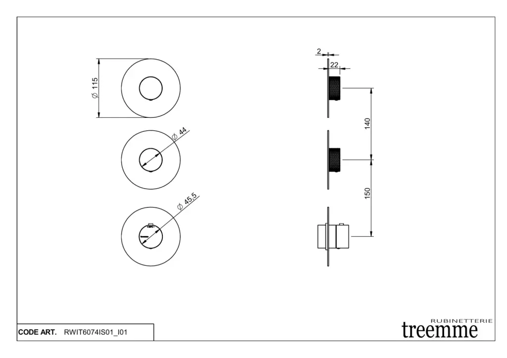 Treemme 22mm Смеситель для душа термостат. встр., 2 потреб., внешняя часть, цвет: нержавеющая сталь RWIT6074IS01