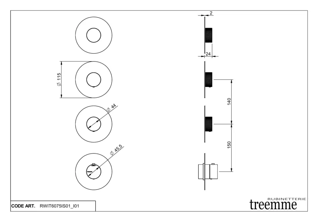 Treemme 22mm Смеситель для душа термостат. встр., 3 потреб., внешняя часть, цвет: нержавеющая сталь RWIT6075IS01