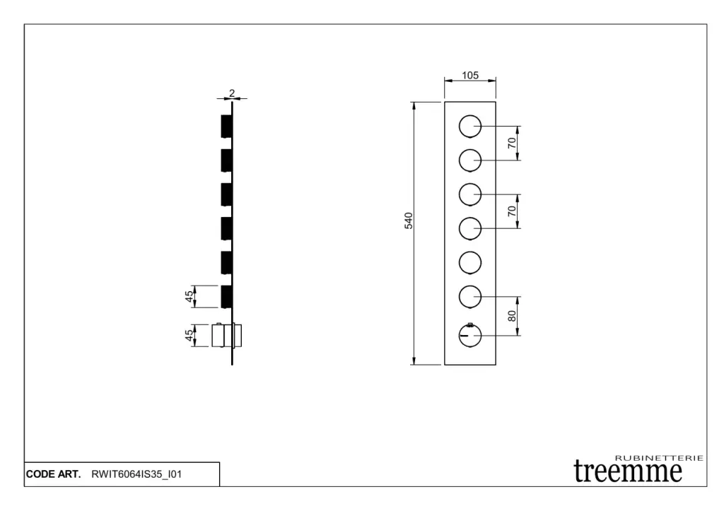 Treemme 22mm Смеситель для душа термостатич. встр., 6 потреб., внеш. часть, цвет: нержавеющая сталь RWIT6064IS35