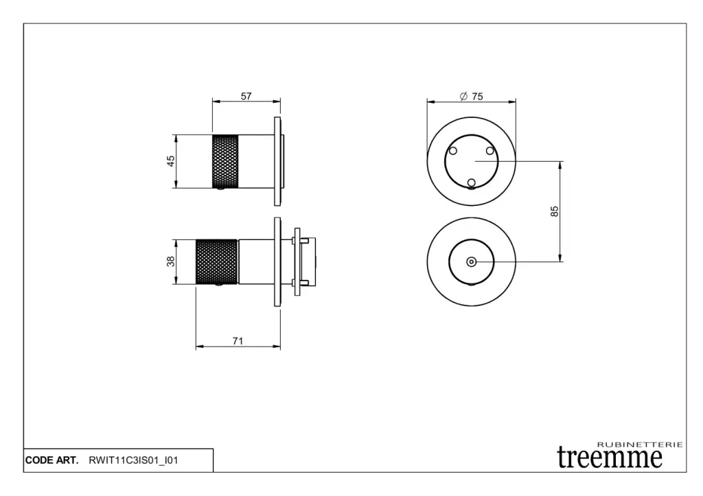 Treemme 22mm Смеситель для душа встраиваемый, 3 потребителя, внешняя часть, цвет: нержавеющая сталь RWIT11C3IS01