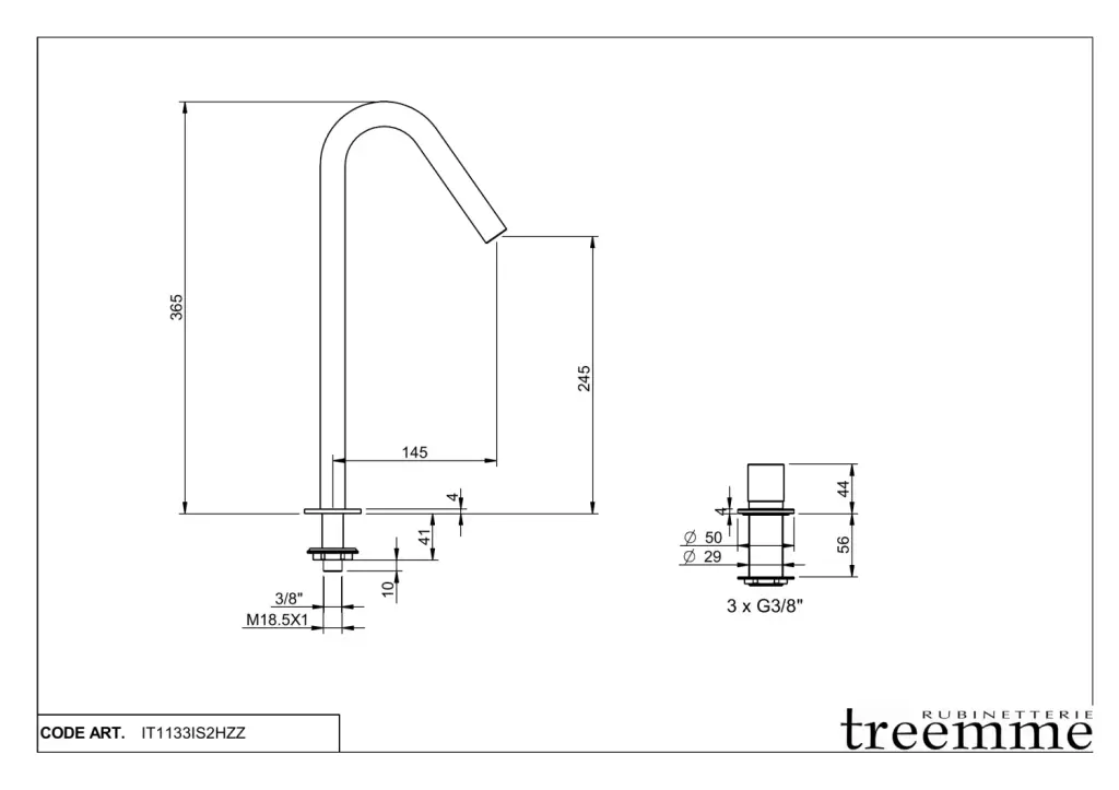 Treemme 22mm Смеситель для кухни без выдвижного излива, цвет: нержавеющая сталь IT1133IS2HZZ