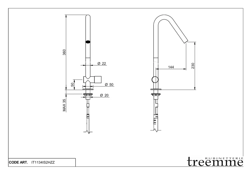Treemme 22mm Смеситель для кухни без выдвижного излива, цвет: нержавеющая сталь IT1134IS2HZZ