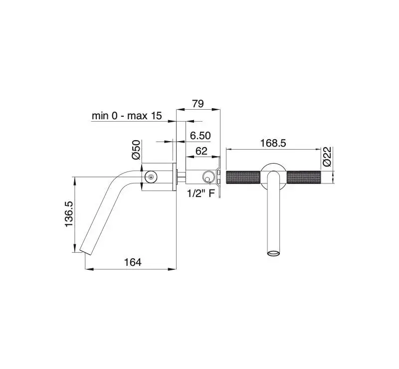 Treemme 22MM Смеситель для раковины настенный встраиваемый, цвет: нержавеющая сталь 6051IS