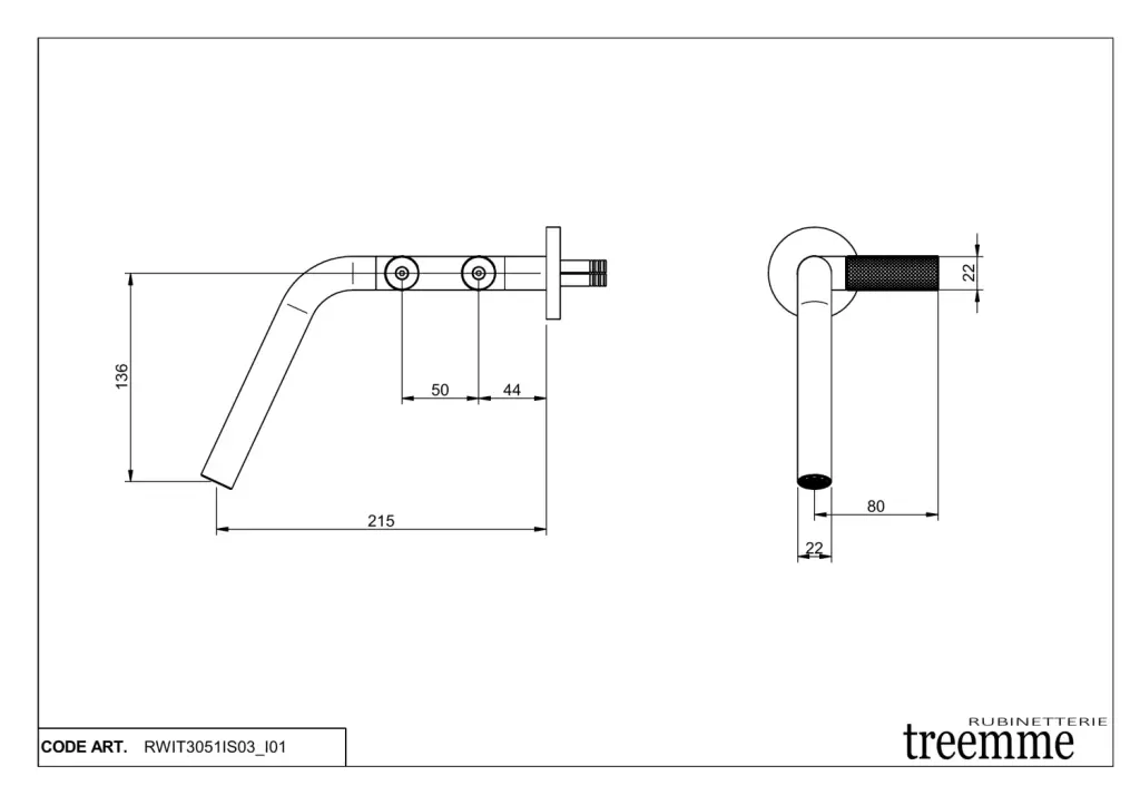 Treemme 22mm Смеситель для раковины встраиваемый, внеш. часть, излив 21,5см, цвет: нержавеющая сталь RWIT3051IS03