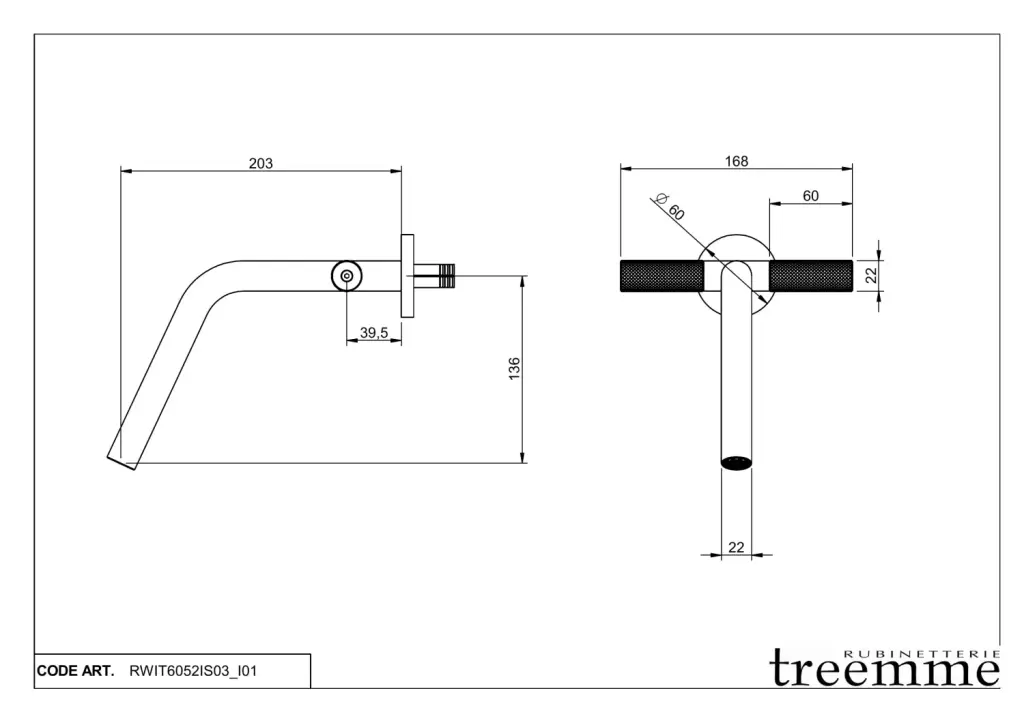 Treemme 22mm Смеситель для раковины встраиваемый, внеш. часть, излив 20,3см, цвет: нержавеющая сталь RWIT6052IS03
