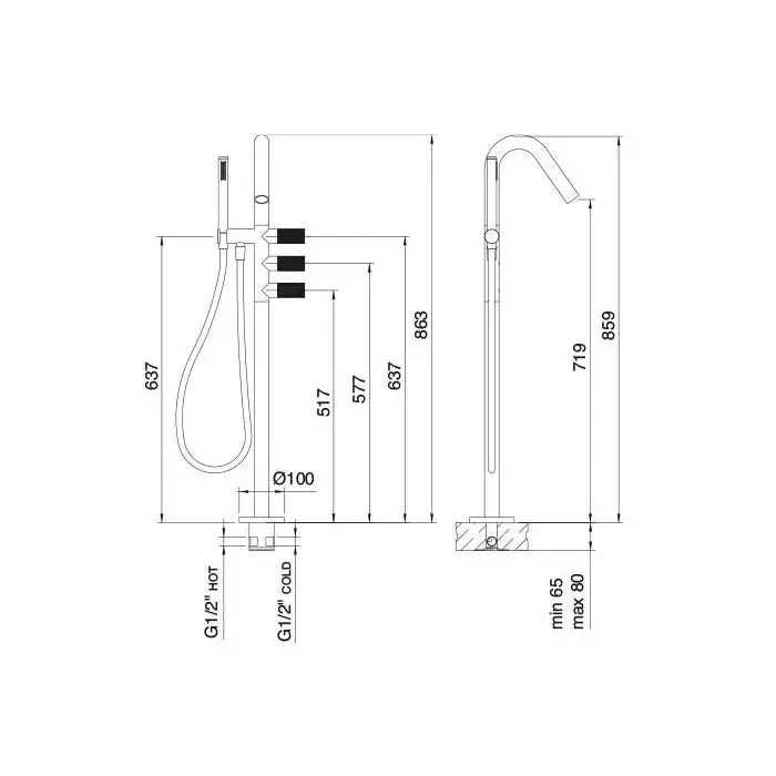 Treemme 22MM Смеситель для ванны напольный, цвет: нержавеющая сталь 6084IS