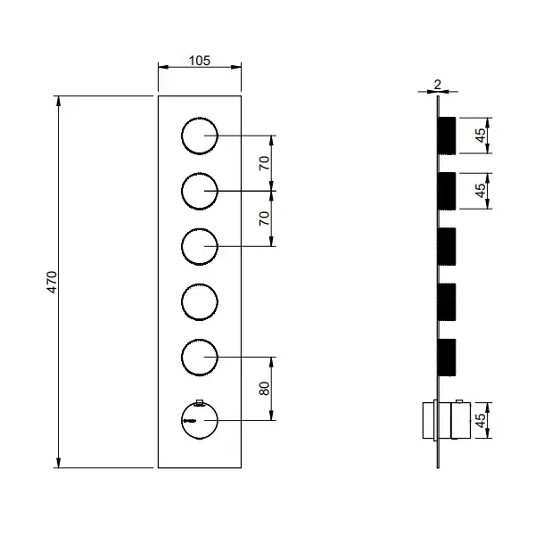 Treemme 22MM Термостат для душа настенный встраиваемый, 5 потребителей, цвет: нержавеющая сталь 6098IS