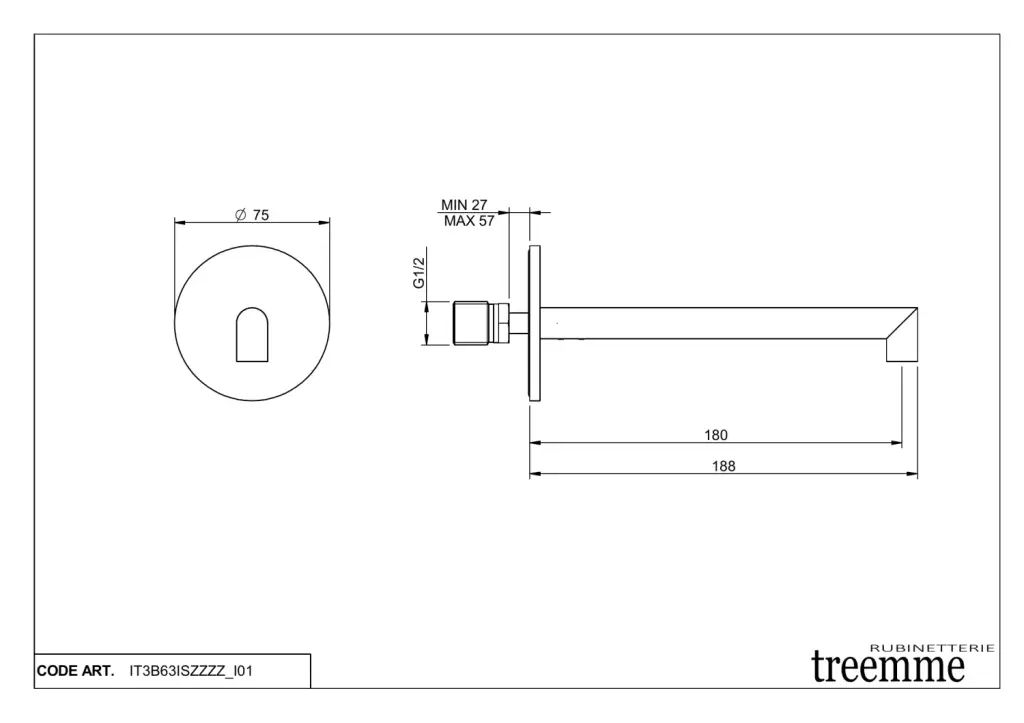 Treemme 28mm Излив настенный для ванны 18,8 см, цвет: нержавеющая сталь IT3B63ISZZZZ