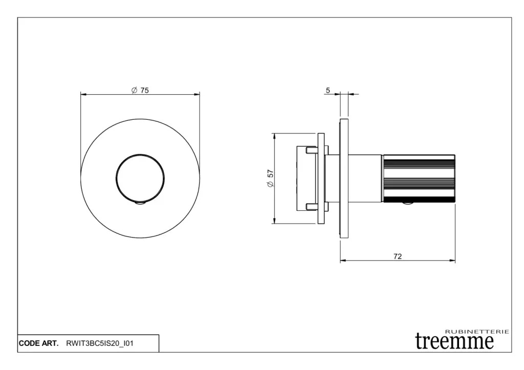 Treemme 28mm Смеситель для душа встраиваемый, 1 потребитель, внешняя часть, цвет: нержавеющая сталь RWIT3BC5IS20