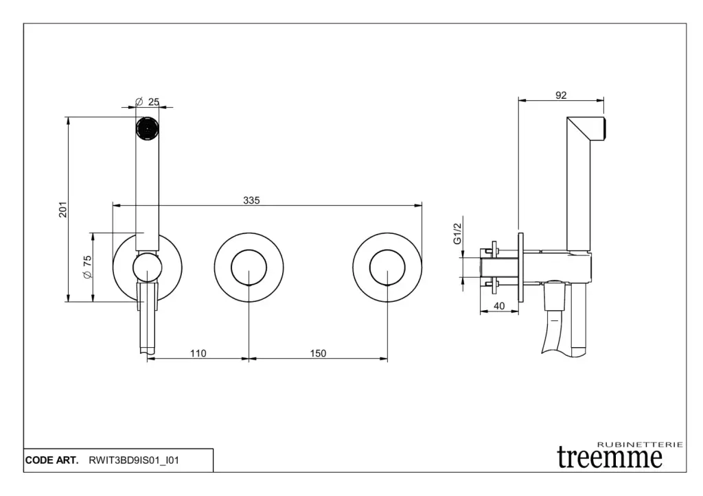 Treemme 28mm Смеситель для душа встраиваемый, 2 потребителя, внешняя часть, цвет: нержавеющая сталь RWIT3BD9IS01