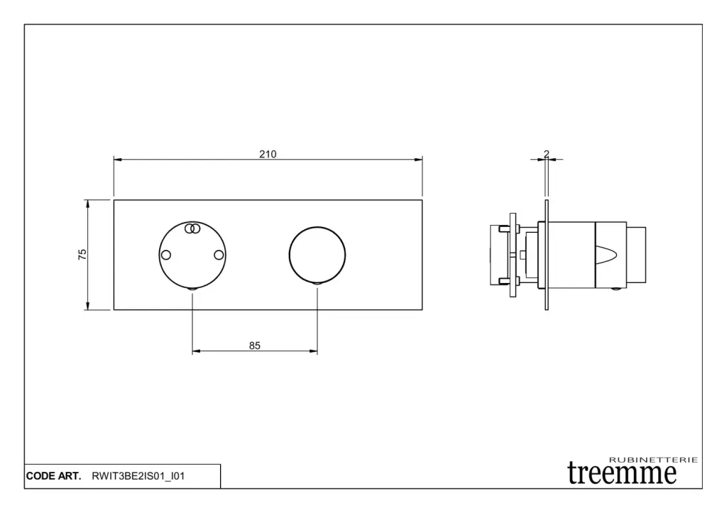 Treemme 28mm Смеситель для душа встраиваемый, 2 потребителя, внешняя часть, цвет: нержавеющая сталь RWIT3BE2IS01