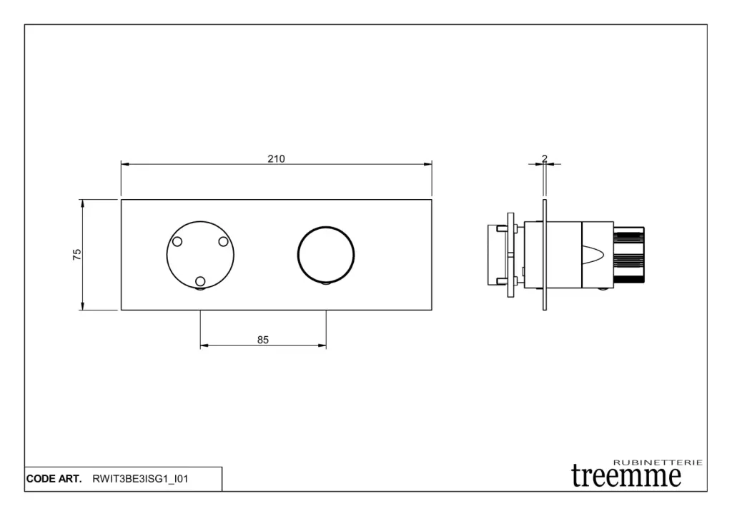 Treemme 28mm Смеситель для душа встраиваемый, 3 потребителя, внешняя часть, цвет: нержавеющая сталь RWIT3BE3ISG1
