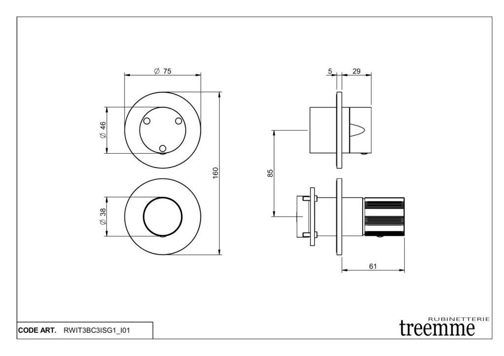 Treemme 28mm Смеситель для душа встраиваемый, 3 потребителя, внешняя часть, цвет: нержавеющая сталь RWIT3BC3ISG1