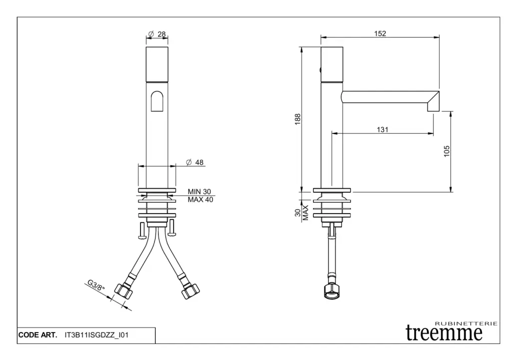 Treemme 28mm Смеситель для раковины, без д/к, длина излива 13,1 см, цвет: нержавеющая сталь IT3B11ISGDZZ