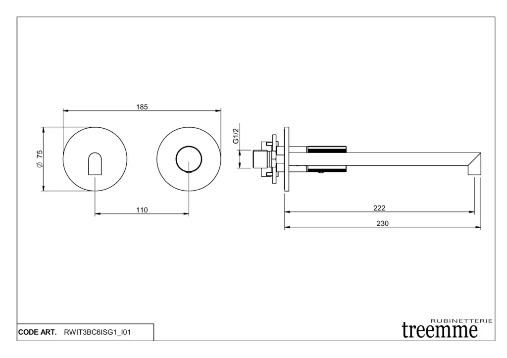 Treemme 28mm Смеситель для раковины встраиваемый, внешняя часть, излив 18см, цвет: нержавеющая сталь RWIT3BC5IS01