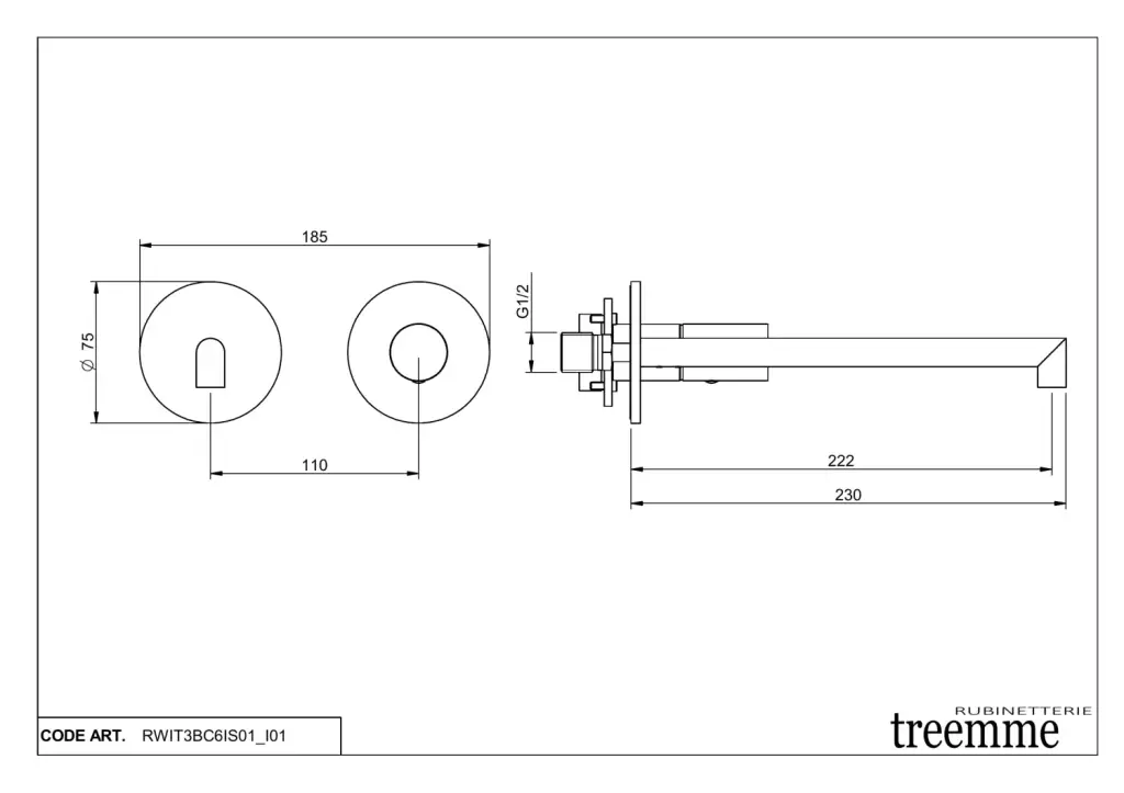 Treemme 28mm Смеситель для раковины встраиваемый, внеш. часть, излив 22,2см, цвет: нержавеющая сталь RWIT3BC6IS01