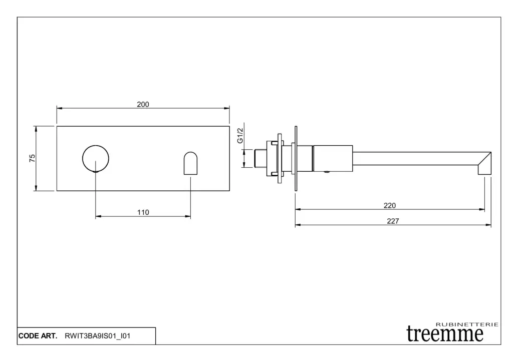 Treemme 28mm Смеситель для раковины встраиваемый, внешняя часть, излив 22см, цвет: нержавеющая сталь RWIT3BA9IS01