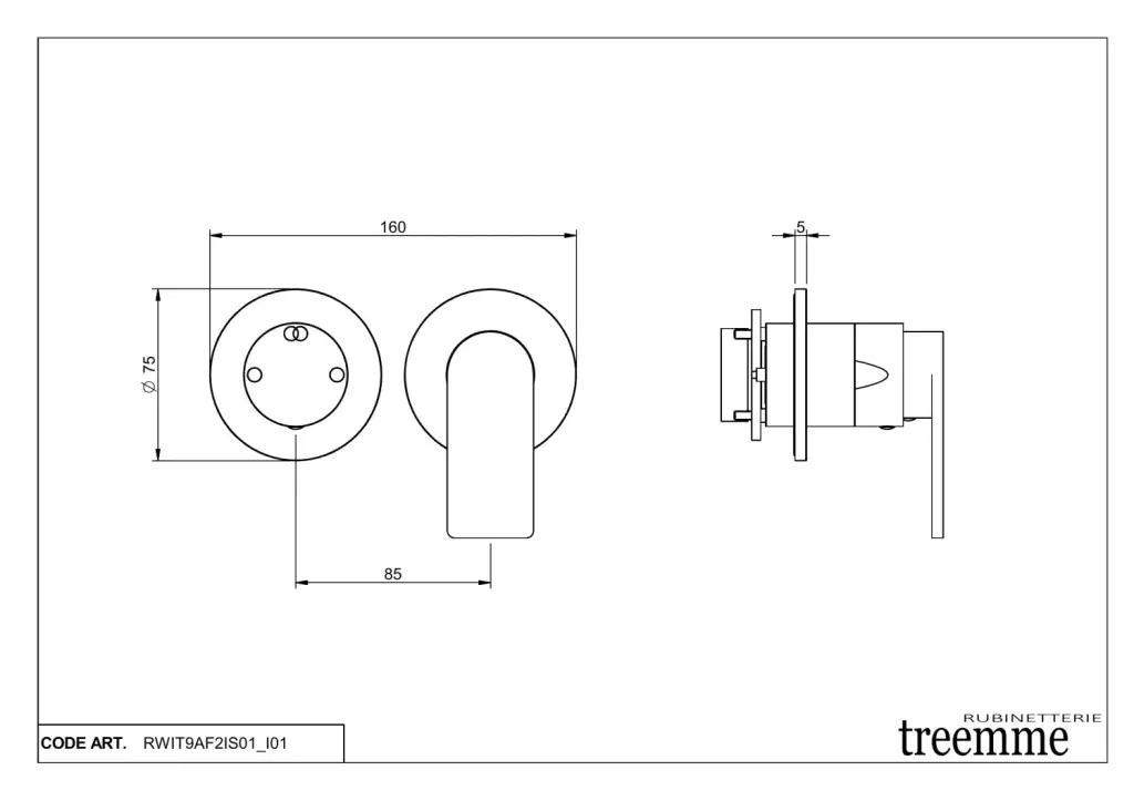 Treemme 3.6MM Смеситель для душа встраиваемый, 2 потребителя, внешняя часть, цвет: нержавеющая сталь RWIT9AF2IS01