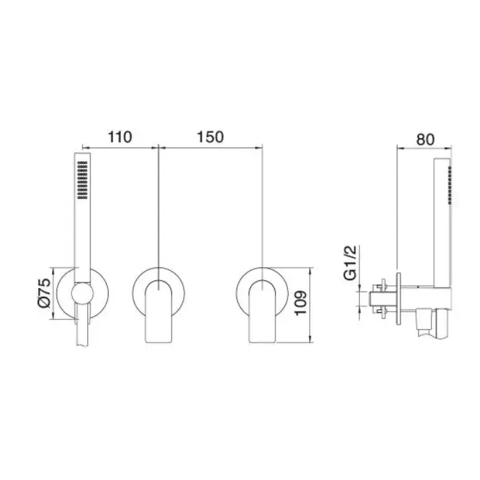 Treemme 3.6MM Смеситель для ванны с ручным душем, встраиваемый, цвет: нержавеющая сталь RWIT9AD9IS03