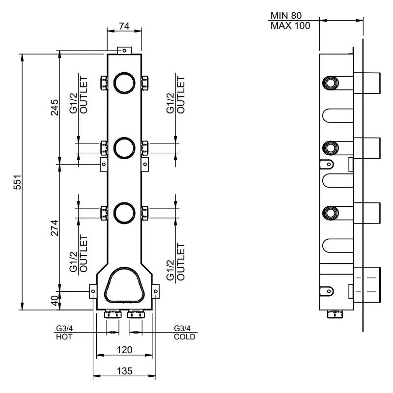Treemme 3.6MM Смеситель для душа, встраиваемый, цвет: нержавеющая сталь RWIT9AC8IS02