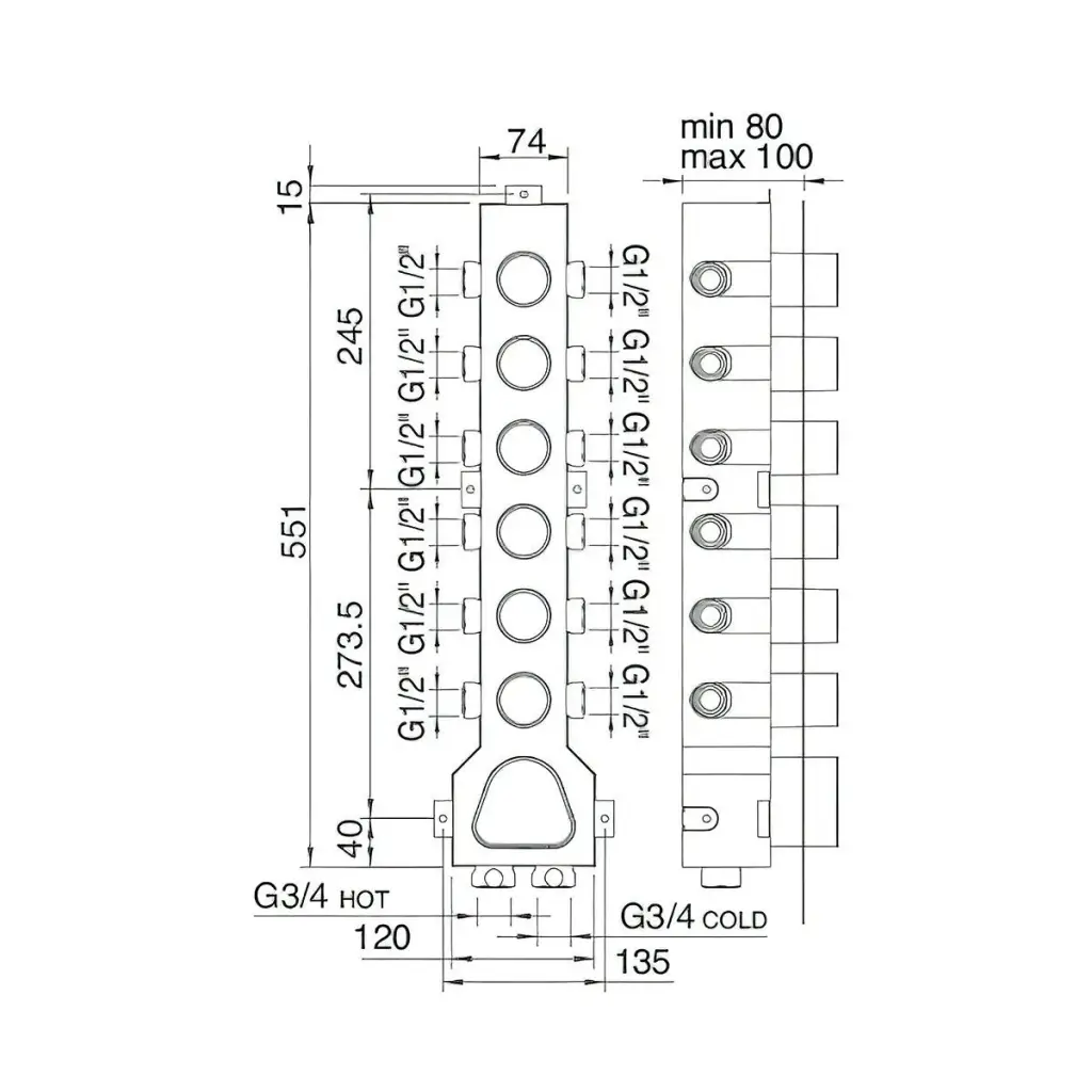 Treemme 3.6MM Внутренняя часть встраиваемого смесителя для ванны/душа с переключателем на 6 выходов RWIT7264ZZ30