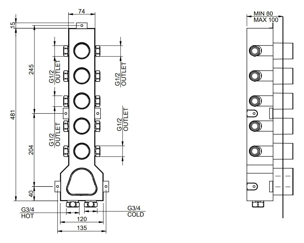 Treemme 3.6MM Внутренняя часть встраиваемого смесителя для ванны/душа с переключателем на 5 выходов RWIT7298ZZ30