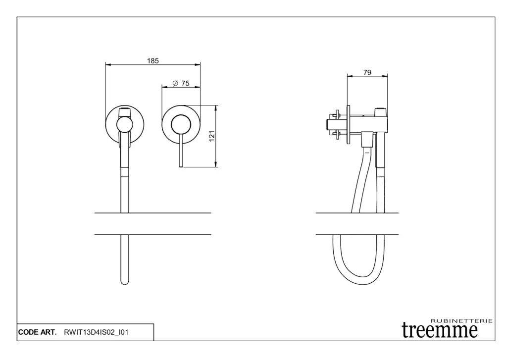 Treemme 40mm Гигиенический душ со смесителем на 1 вид струи, цвет: нержавеющая сталь RWIT13D4IS02
