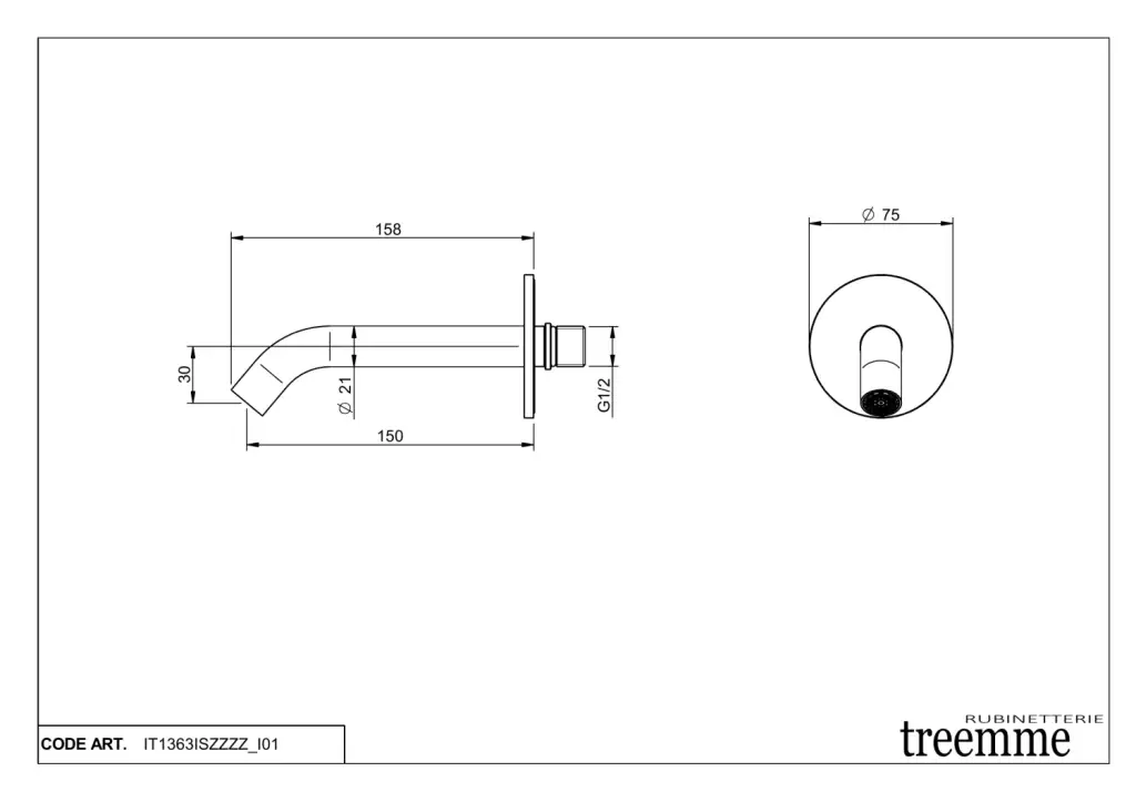 Treemme 40MM Излив настенный для раковины/ванны, цвет: нержавеющая сталь 1363IS