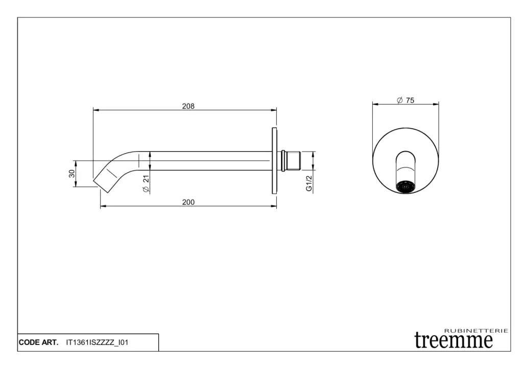 Treemme 40mm Излив для раковины 20,8 см, цвет: нержавеющая сталь IT1361ISZZZZ