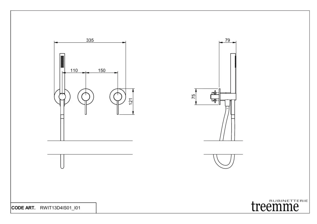Treemme 40mm Смеситель для душа встраиваемый, 1 потребитель, внешняя часть, цвет: нержавеющая сталь RWIT13D4IS01