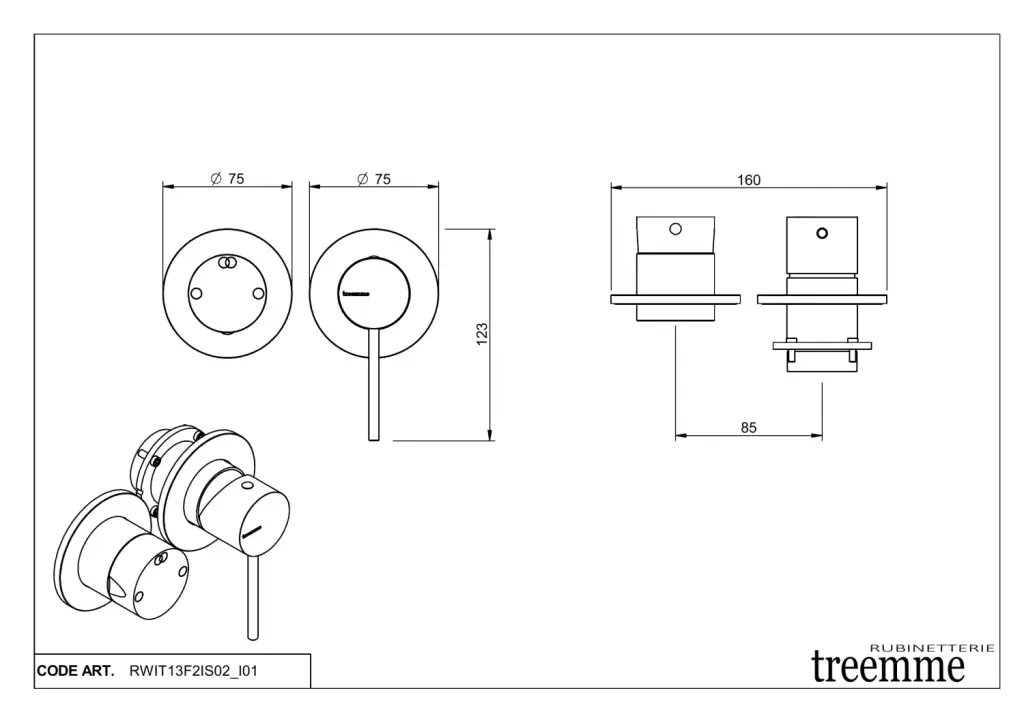 Treemme 40mm Смеситель для душа встраиваемый, 2 потребителя, внешняя часть, цвет: нержавеющая сталь RWIT13F2IS02