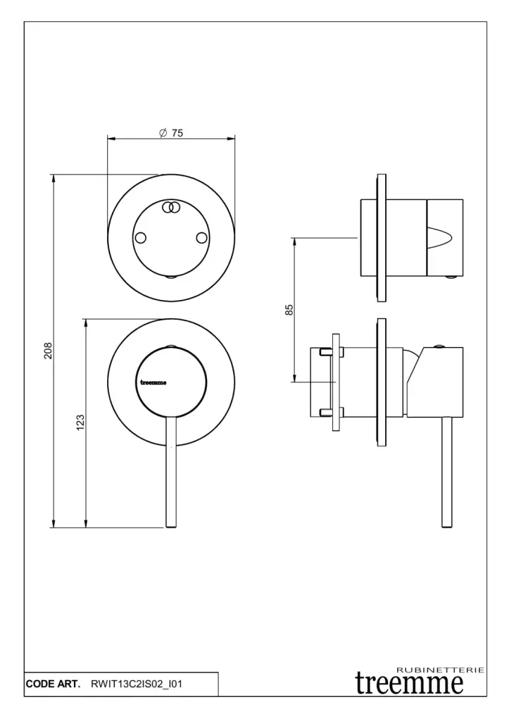 Treemme 40mm Смеситель для душа встраиваемый, 2 потребителя, внешняя часть, цвет: нержавеющая сталь RWIT13C2IS02