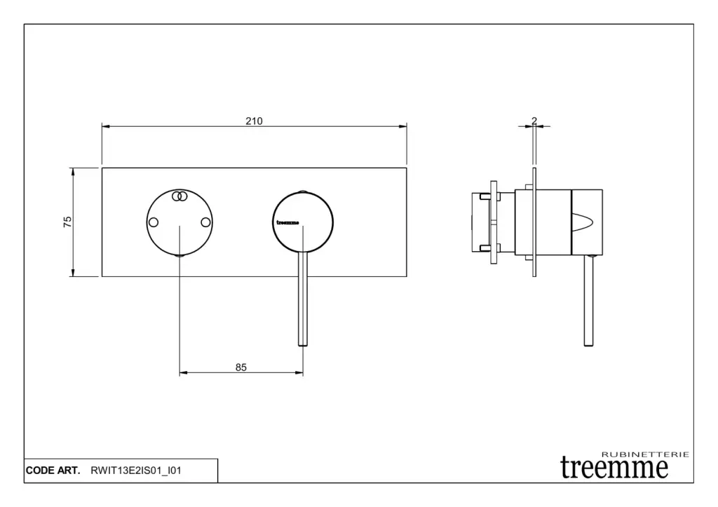 Treemme 40mm Смеситель для душа встраиваемый, 2 потребителя, внешняя часть, цвет: нержавеющая сталь RWIT13E2IS01