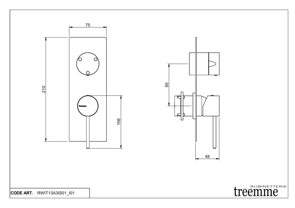 Treemme 40mm Смеситель для душа встраиваемый, 3 потребителя, внешняя часть, цвет: нержавеющая сталь RWIT13A3IS01