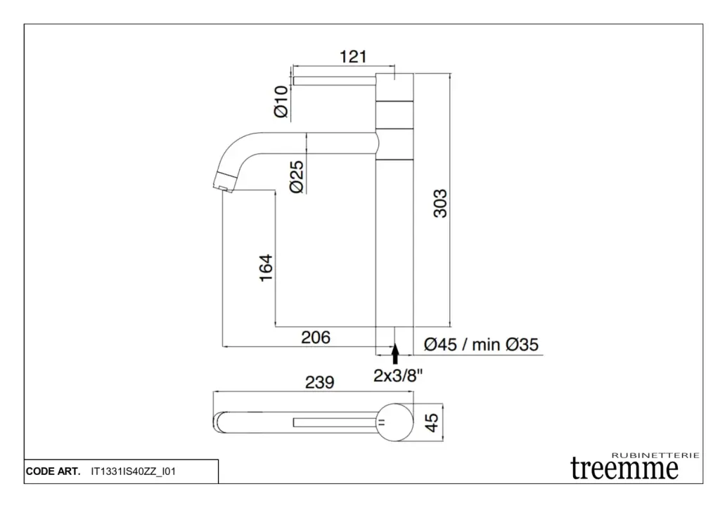 Treemme 40mm Смеситель для кухни без выдвижного излива, цвет: нержавеющая сталь IT1331IS40ZZ